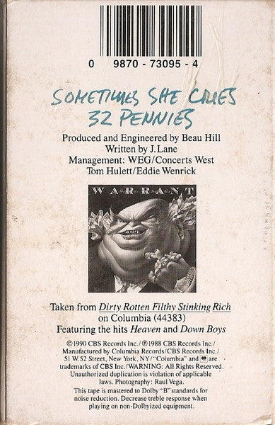 Warrant - Sometimes She Cries U.S. Cassette Single